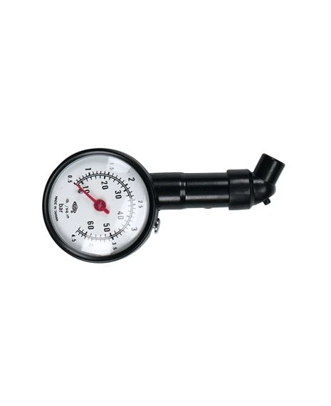 Analoge bandenspanningsmeter met een robuuste metalen behuizing.