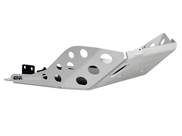 Specifieke GIVI carterbeschermings plaat, gemaakt van aluminium en wordt gemonteerd op de originele bevestigingspunten van de motorfiets.