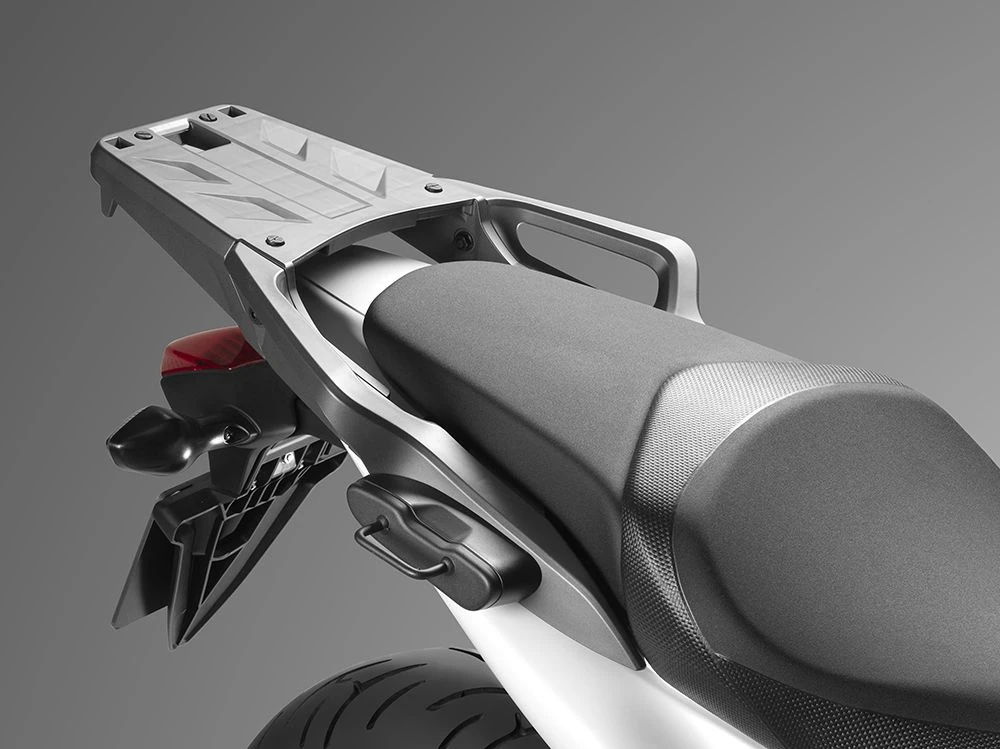 Een Zilvergrijze bagagedrager die is benodigd voor de 35 liter en 45 liter topkoffer. Moet gecombineerd worden met de zijkoffer handgrepenkit 08L74-MGS-J70 (zilvergrijs).