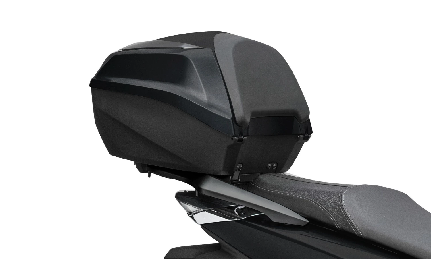 35 Liter kunststof Topbox gelakt in kleur passend bij de SH carrosserie. Deze Top Box kan 1 helm opbergen en is voorzien van een rugkussen om het comfort van de passagier te verbeteren. Kleur: MAT COAL BLACK METALLIC