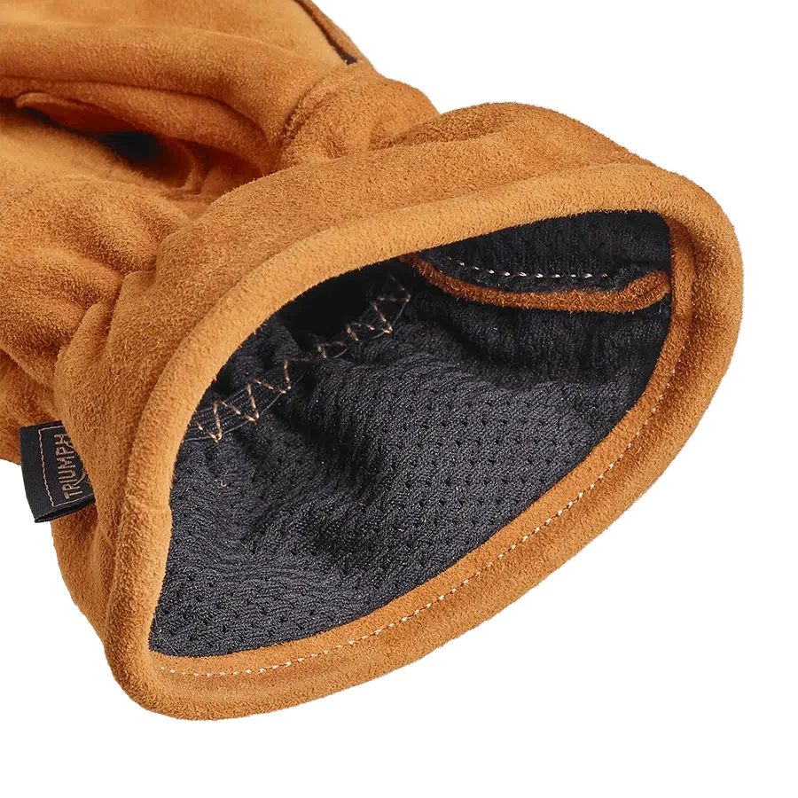 De Tri-Fleece voering zorgt voor warmte en comfort, waardoor je handen behaaglijk blijven, zelfs bij koude temperaturen. De Triumph Brookdale handschoen is volledig gemaakt van hoogwaardig suède. Dit zorgt niet alleen voor een stijlvolle uitstraling, maar ook voor duurzaamheid en een goede grip op de handvatten.