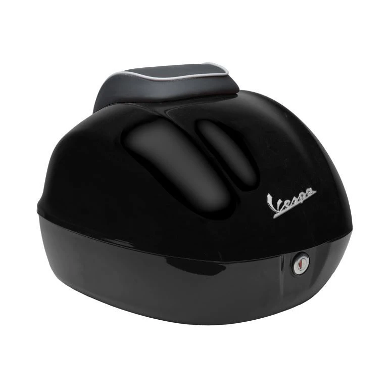Topkoffer gelakt in de kleur van de scooter. Ruimte voor een integraalhelm. Verchroomd Vespa-relieflogo. Rugsteun apart te bestellen. Kleur: zwart.